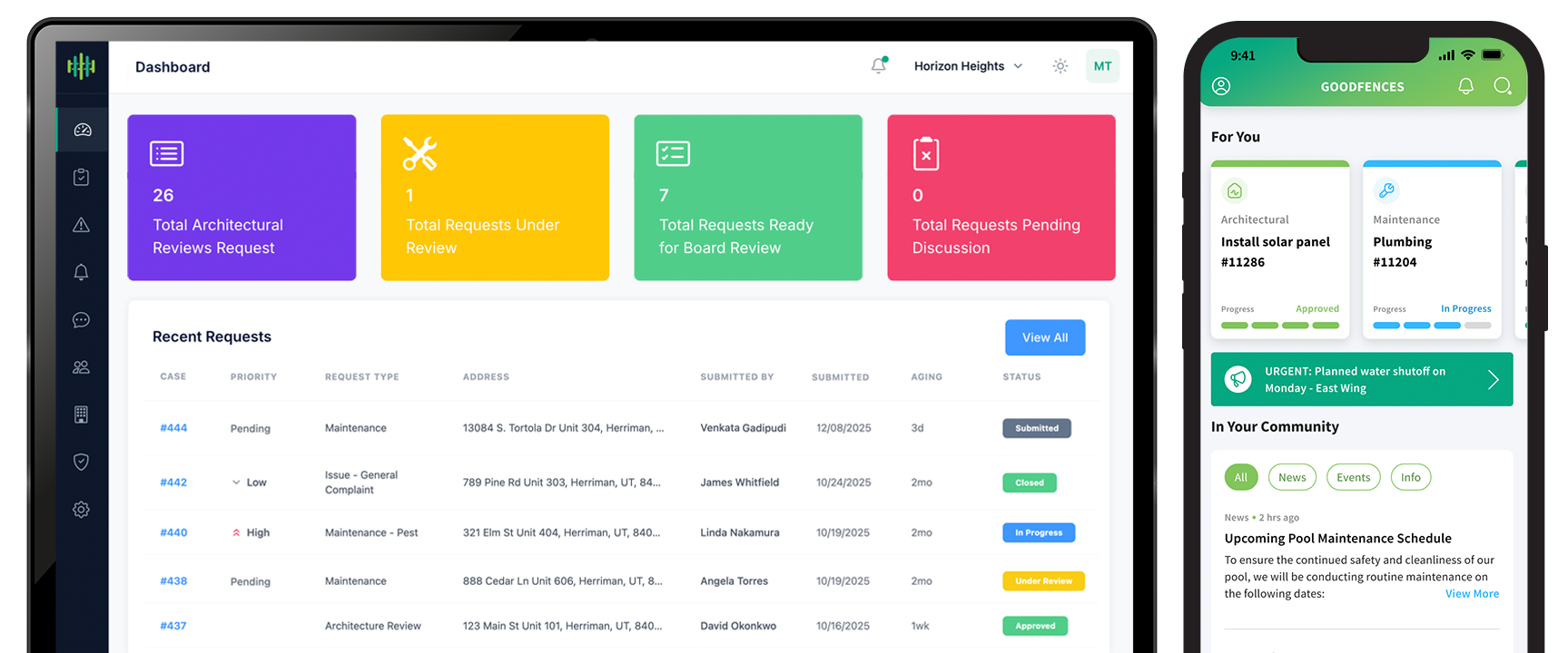 GoodFences improves communication, compliance, and issue resolution to build transparency and trust between homeowners and their community associations.